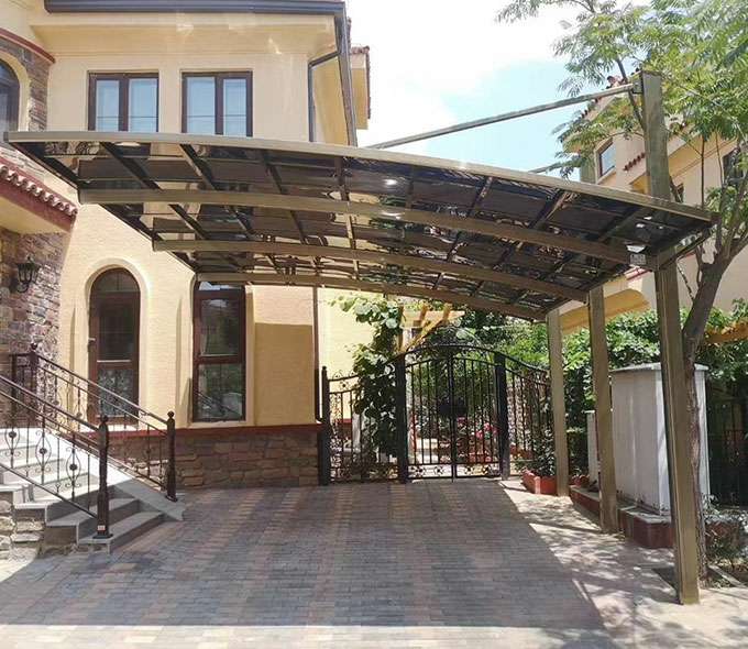 重庆健行瓷砖生产有限公司车棚系列全部采用高品质、高强度铝合金材料精加工而成,具备的氧化保护能力,不生锈,表面特殊的工艺处理,大大提高了车棚的使用寿命。顶棚使用添加了防止紫外线涂层的德国拜耳耐力板,降低了来自紫外线的分解,历久弥新,成就了优越的耐候性。